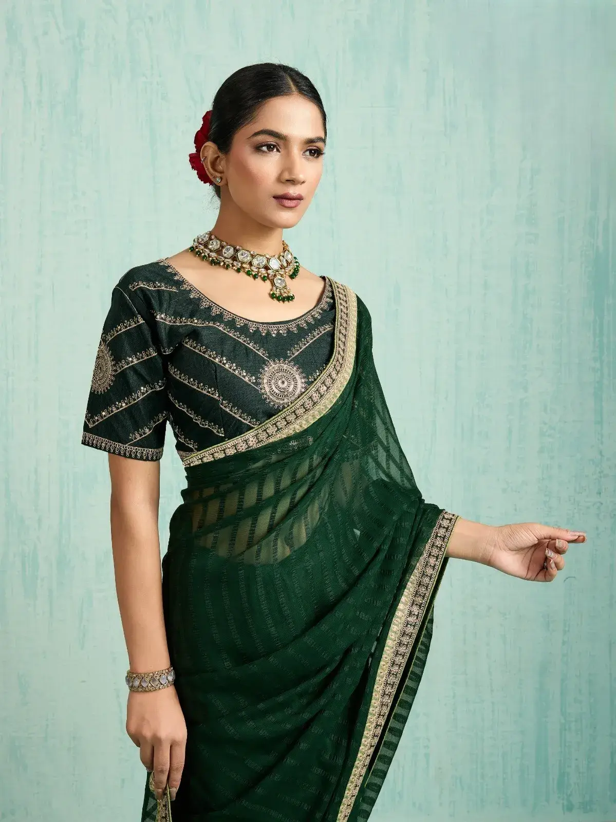 Mehendi Green Chiffon Saree with Zari & Sequin Work