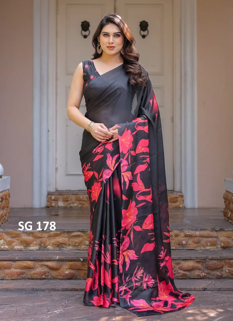 Designed to enhance your festive look perfectly styled for you. This black saree features elegant printed work that ideal for women who love ethnic fashion. designed with superior sattin georgette quality.